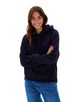 It features a soft cotton-faced fabric, brushed back fleece, and drop shoulders for a casual shape. Details like the double fabric hood, ribbed trims, and tear-out label make it perfect for rebranding. A front pouch pocket with a hidden headphone cord opening adds a smart finishing touch.