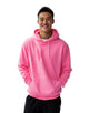 It features a soft cotton-faced fabric, brushed back fleece, and drop shoulders for a casual shape. Details like the double fabric hood, ribbed trims, and tear-out label make it perfect for rebranding. A front pouch pocket with a hidden headphone cord opening adds a smart finishing touch.